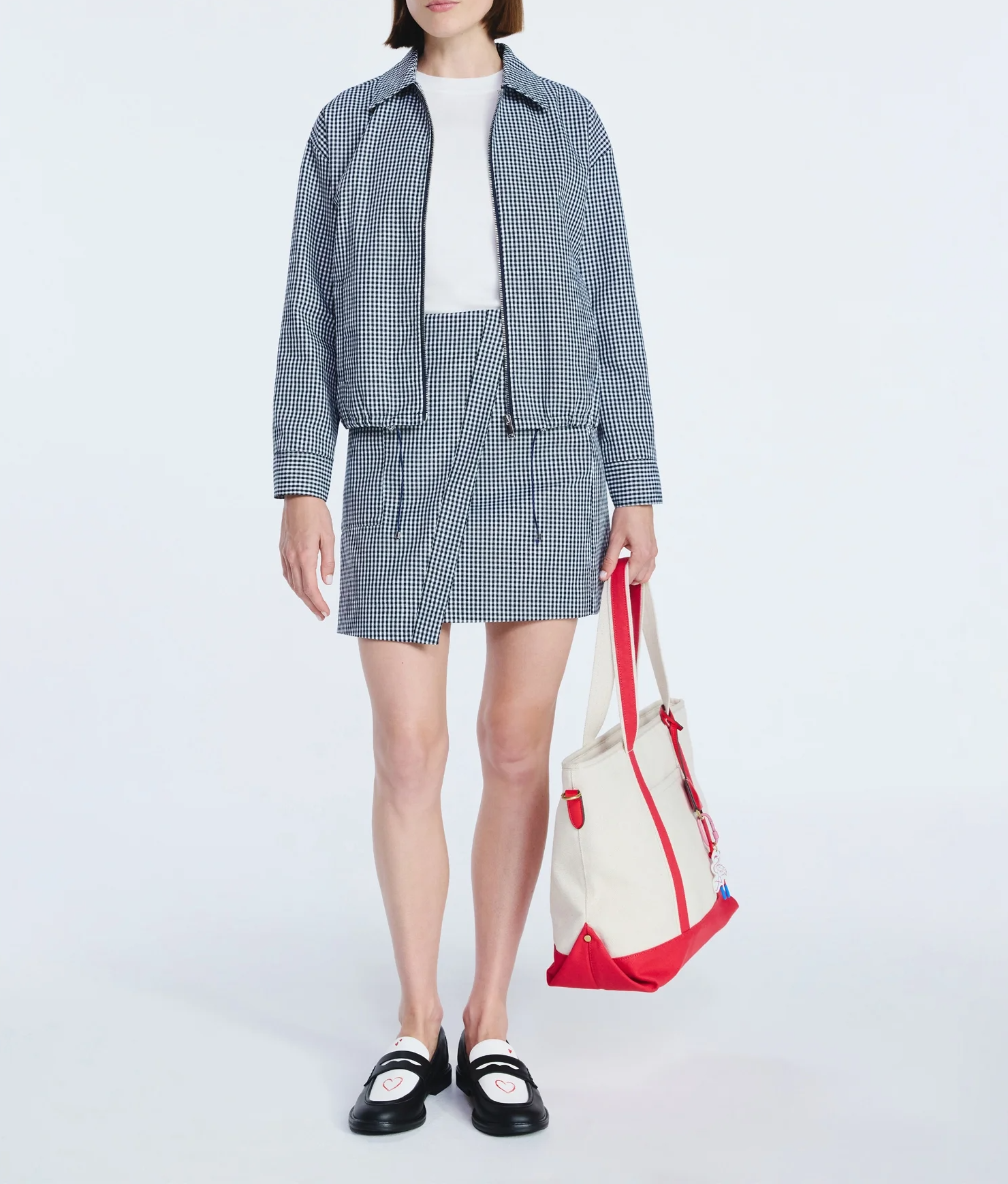 Collared Bubble Jacket+Faux Wrap Mini Skirt
