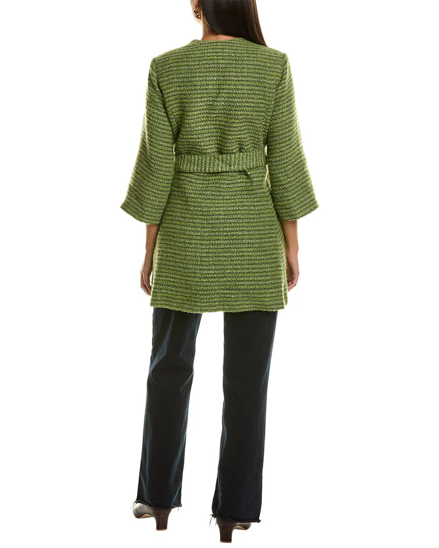 -This stylish coat features a metallic design, 3/4-length sleeves, and a flattering self-tie sash at the waist for a chic and polished look.