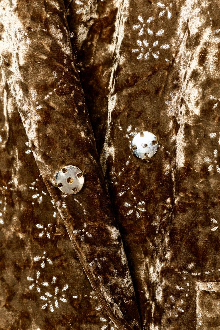 Metallic-thread velvet blazer with belt